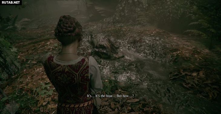 Лион слишком поспешил, и Амиция волнуется. Пройдите через лес и мутную воду, пока не дойдете до дыры в земле. Вскоре после того, как вы наткнетесь на тушу дикого кабана, начнется кат-сцена. После этого мы вернемся в поместье де Рунов с нашей Амицией, все еще заметно потрясенной потерей.