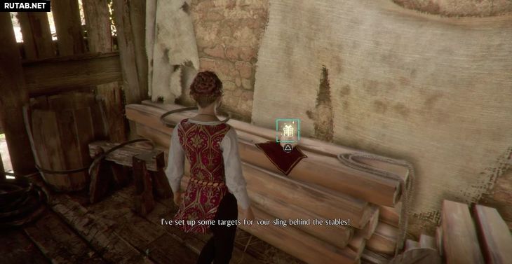 Теперь возвращайтесь в основную часть поместья, пока не увидите большую стальную дверь. Идите направо, пока не дойдете до небольшого участка с тележками под крышей. В этой области вы можете завершить свое обучение, бросая больше камней со своей пращей, открывая, таким образом,