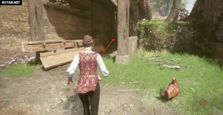 Идите направо и слева вы увидите конюшни. Поднимитесь по лестнице, которую вы найдете в третьей конюшне, чтобы обнаружить коллекционку (Подарок 1 - Утиный свисток) .