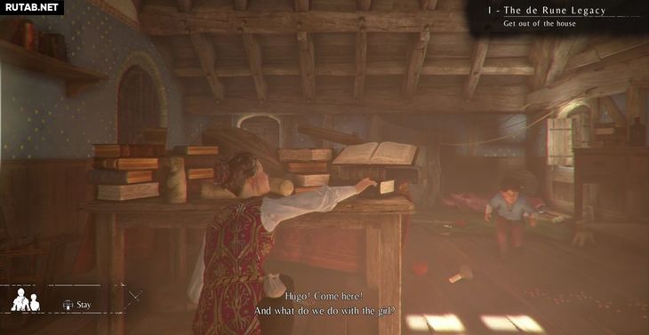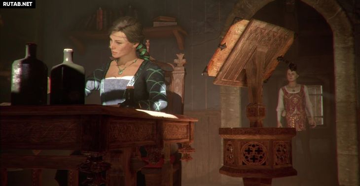 Теперь откройте дверь на вершине винтовой лестницы. Здесь мы встретимся с матерью Амиции, Беатрис, которая занята поиском лекарства для Гуго и не слишком заинтересована в том, чтобы проводить время с дочерью. Тем временем, инквизиторы достигли фермы, и назревает проблема. Время найти нашего младшего брата, Гуго.
