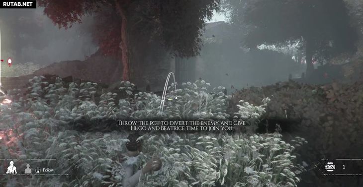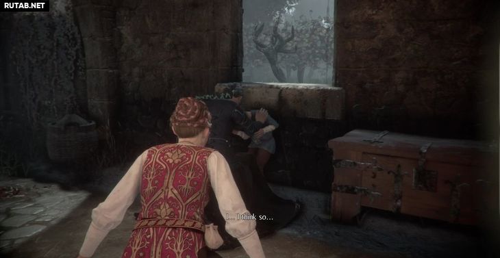 В следующей области пробирайтесь сквозь деревья, как только охранник пройдет мимо, и ваша мама присядет. Поднимитесь в открытое окно и послушайте, как Беатрис напоминает Амиции, что она должна помочь Гуго перелезть через заборы и окна, поскольку он слишком слаб из-за проблем со здоровьем.