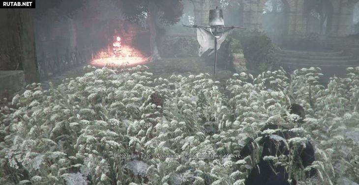 Выйдя из дома, вы должны следовать за Беатрис, когда вы проходите мимо охранников. Ключ к успешному прохождению этой области игры заключается в том, чтобы держаться как можно ближе к Беатрис и прислушиваться к ее словам, когда безопасно идти, а когда нет. В первой области присядьте в высокой траве и следуйте за Беатрис.