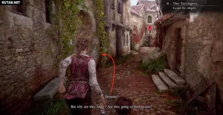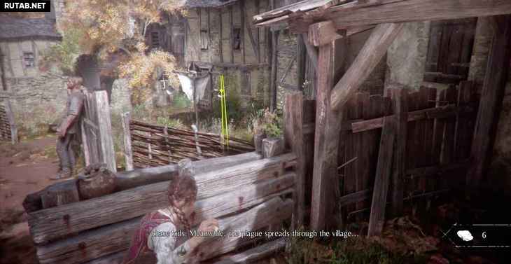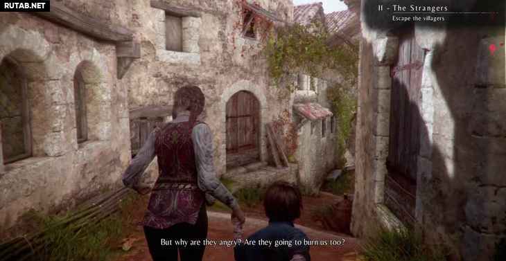 Войдите в деревню, которая кажется совершенно пустынной. Люди забаррикадировались в своих домах, чтобы избежать заражения, и враждебны ко всем, кто приближается, о чем свидетельствуют большие белые кресты на их порогах, включая наших двух новых сирот. Никто не хочет впускать Гуго и Амицию.