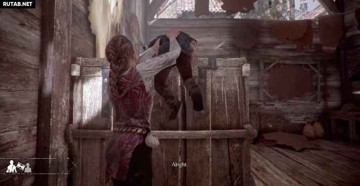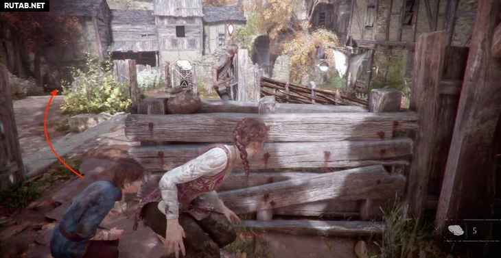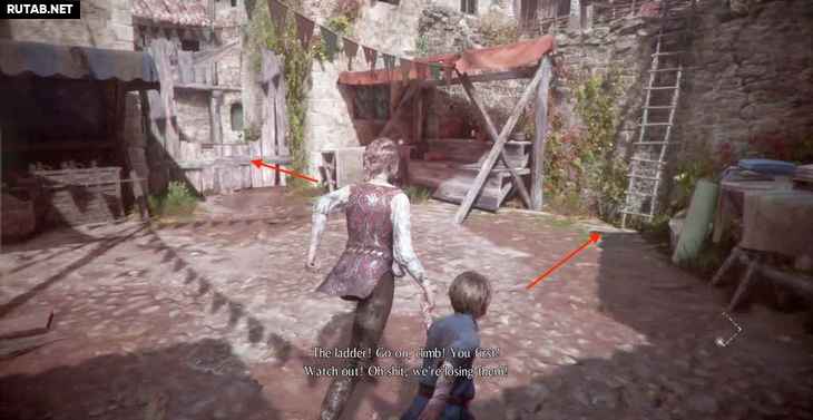Продолжайте следовать линейному пути, и вскоре встретите кричащую из окна женщину. Да, вы уже догадались, пора бежать еще раз. Когда вы доберетесь до небольшого квадратного маркера, сначала идите к лестнице, чтобы помочь Гуго подняться. Затем пройдите через отверстие слева от вас, чтобы встретиться с Гуго, который над вами.