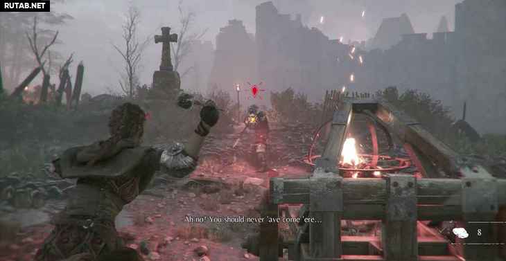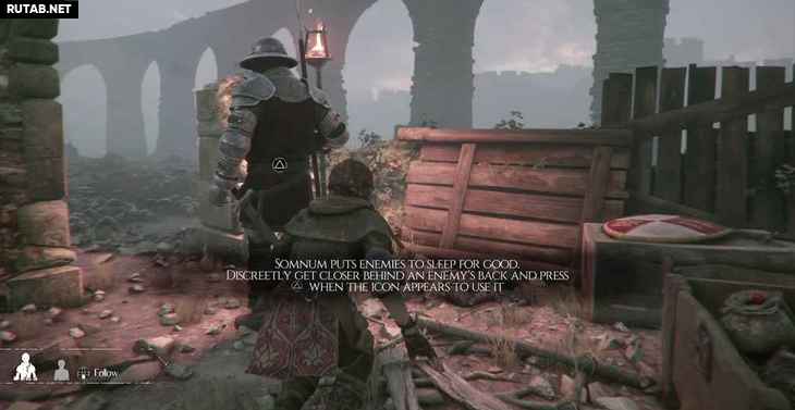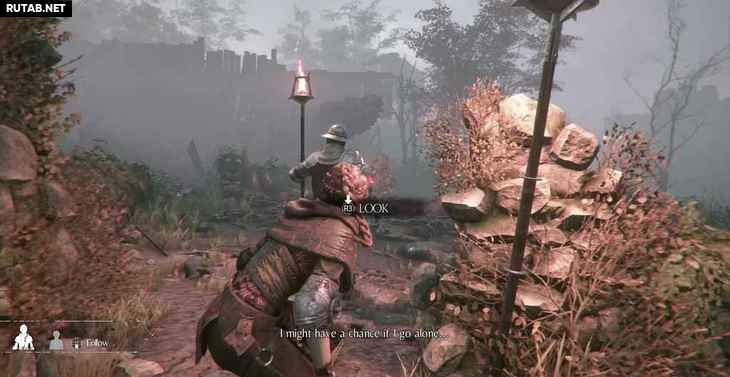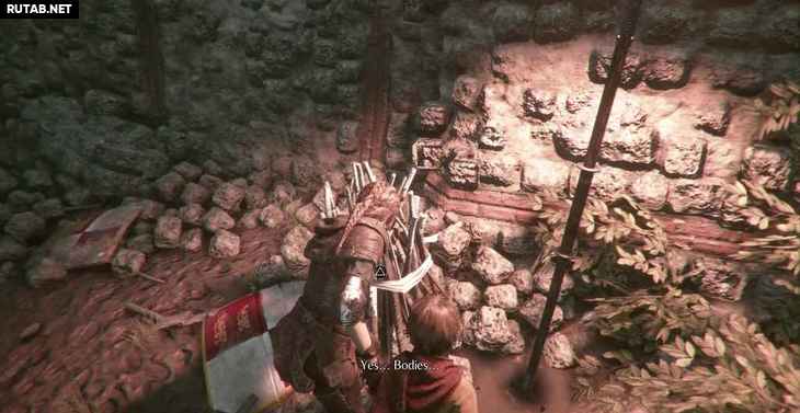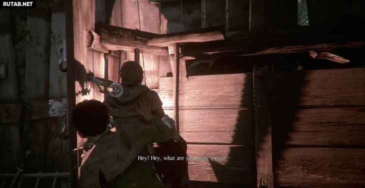 Милосердие. Сначала возьмите факел с места установки и продолжайте, пока не пересечете первое отверстие. Посмотрите налево, и вы увидите новое место для факела. Поместите его здесь, потому что если вы просто идете к солдату с факелом, крысы съедят его. Затем экипируйте снаряд воспламенитель и наведите на фонарь рядом с ним. Тем самым вы спасете солдата и, в благодарность, он не будет бить тревогу.