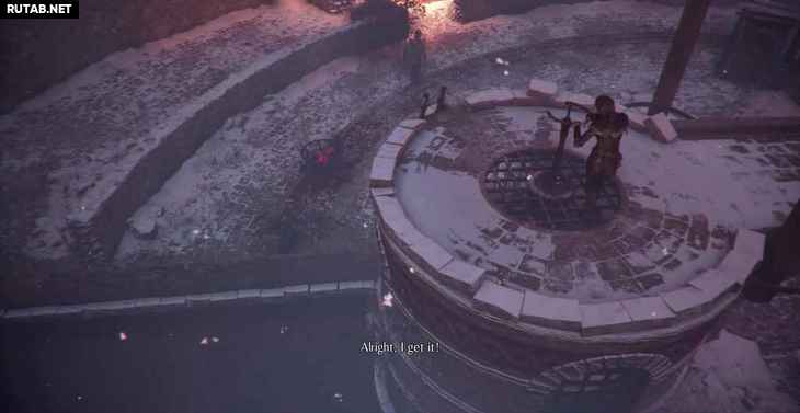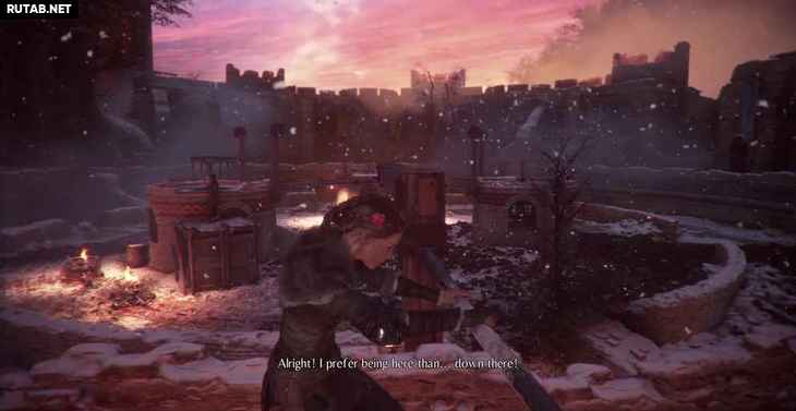 Когда вы закончите исследовать, просто присоединяйтесь к Артуру у крепостных валов. Вместе вы получите жаровня на месте и зажгите его.