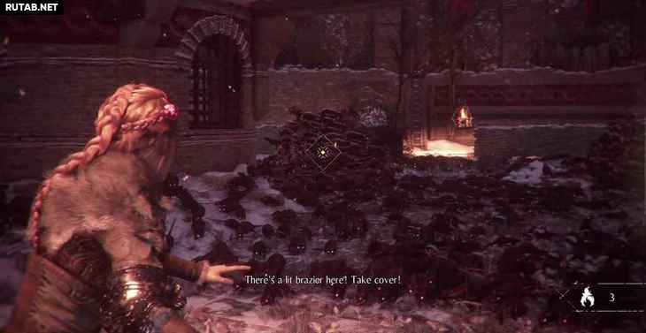 Для этого просто переместите жаровня рядом с Артуром в нужное положение. Не трать свои боеприпасы, Артур позаботится о том, чтобы зажечь жаровню.