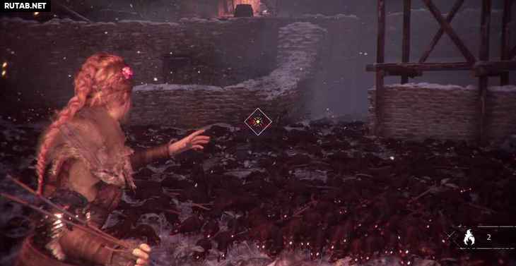 - Добраться до крепостных стен и поместите последнюю жаровню рядом с ямой