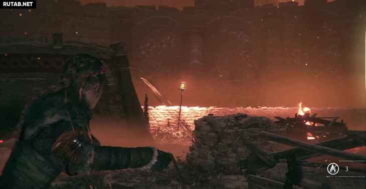 После того, как жаровня зажглась, быстро бегите к следующему источнику света.