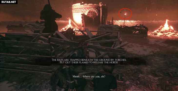 После того, как вы раскопали несколько крыс и потушили пламя, используйте Империум на мессир Николай. Помните, что когда Гуго держит руку Амиции, она может управлять его крысами. После первого нападения на Николая он выйдет из первой орды крыс Жить с мечом в огне.