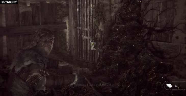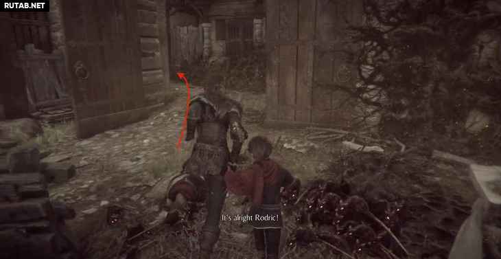 Яма не пересекается, но к счастью для нас есть дверь в дом поблизости, с которым мы можем взаимодействовать и позволить Родрику открыть ее.