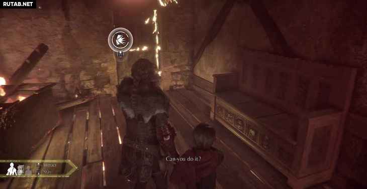 Между тем некоторые зажженные жаровни будут с потолка. Убей их, пока Виталис готовит свою следующую атаку. После двух атак Виталис снова станет уязвимым. Просто заставь Гуго напасть на него и будь готов бросить камень в его голову.