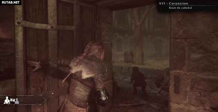 Затем продолжайте, пока камера не переместится через собор. Здесь мы собираемся сделать наш первый обход последнего и последнего Тележка алхимика (5/5): сразу после того, как вы увидели собор на расстоянии, поверните направо, чтобы увидеть большой белый X на двери. Пройдите мимо забора и используйте нокаутирующую способность Родрика, чтобы быстро избавиться от охранника и войти в телегу.