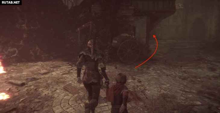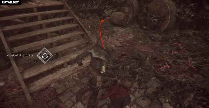 В следующей области бросайте камни в фонари врагов и используйте Империум Гуго, чтобы убить их. Прежде чем подняться на виселицу и получить доступ к ступеням собора, возьмите последний Коллекционный предмет (Диковинка 26 - Руководство для инквизитора) Найдите за бочками справа от лестницы на виселице.