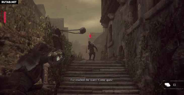 Поднимитесь на холм с Лукасом, Родриком и Мели. К сожалению, крысы разрушили самый быстрый доступ к городу, и наш единственный шанс - пройти по хорошо охраняемому маршруту.