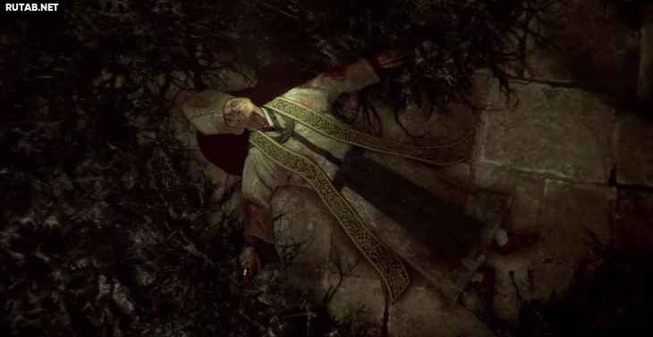 Прежде чем продолжить, мы должны сделать наш второй обходной путь для Коллекционный предмет (Диковинка 25 - Епитимья). Рядом с двумя охранниками находится переулок, который ведет к трупу охранника. Коллекционный предмет сидит у его ног.