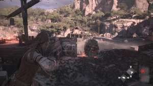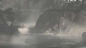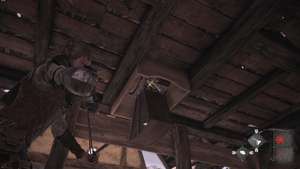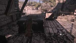 Пробирайтесь вперед и выбивайте тело, блокирующее механизм. Поднимитесь на паром, как только он пересечет реку, затем прикажите Луке остановить рукоятку и позволить вам перебраться на другую сторону. Поднимитесь наверх, а затем обратите внимание на груз, свисающий с середины потолка.