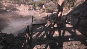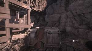 Вокруг задней части здания есть брешь в заборе. Протиснитесь через нее и поднимитесь по лестнице, чтобы найти запертый верстак. Если у вас нет ножа, чтобы открыть его, есть один возле дровяной площадки на берегу неподалеку. Идите вниз по береговой линии к мосту и обнимите скалу слева. Подойдя к строению, посмотрите вверх, чтобы увидеть небольшой подъемный мост, поддерживаемый цепью.