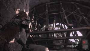 Как только Лука снова окажется с вами, скажите ему, чтобы он повернул рукоятку. Как только тюк сена будет висеть возле лестницы, зажгите его и прикажите Луке отпустить рукоятку. Следуйте за тюком сена, пока он вращается, и прыгайте вверх, чтобы вызвать последовательность, в которой вы, казалось бы, обречены. Однако Лука бросит вам Пирит, который вам будет предложено использовать, что позволит вам безопасно добраться до следующей платформы.