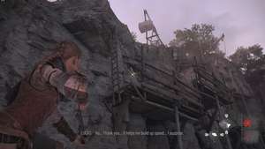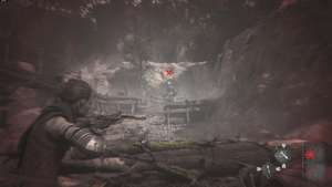 Вернитесь к механизму и поверните его обратно, затем перетащите тележку на следующую платформу для свода, чтобы вызвать кат-сцену, в которой люди Арно схватили Луку. Амиция запрыгнет на арбалетную турель, из которой вам нужно будет прицелиться и выстрелить, чтобы убить двух солдат наверху.