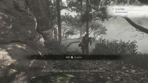 Это вызывает последовательность погони, в которой вам нужно будет перепрыгивать через препятствия. В конце концов, вы соскользнете в пещеру, в которой будет патрулировать несколько охранников. Убейте их или проскользните мимо, но как только вы доберетесь до поляны в пещере, вас все равно заметят.