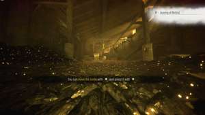 Восстановление контроля над Амицией. используйте Воспламенитель Пращи, чтобы зажечь жаровню и фонарь дальше по комнате, затем бросьте смолу в зажженную жаровню, чтобы вы могли спрыгнуть вниз и направиться к фонарю.