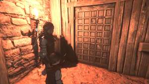 Возьмите факел из фонаря и поднимитесь по лестнице. Поместите факел в фонарь в конце пути, затем откройте дверь справа.