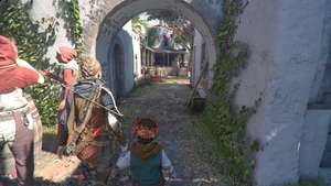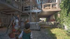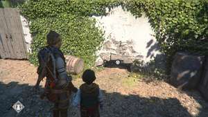 Бегите по улицам и в дом за веревками для белья. После короткой кат-сцены спускайтесь вниз через конюшню, используя верстак справа, если вам нужно, затем прикажите Гуго проползти под стеной рядом с коровами.
