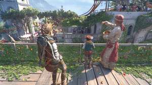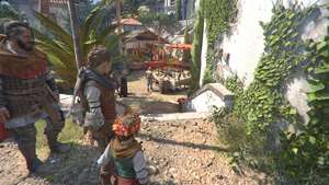 Когда вы восстановите контроль, идите и поговорите с Софией, чтобы пристыковаться. Оказавшись на суше, идите вперед к первому рынку и пройдите через переулок направо.