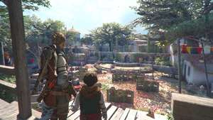 Продолжайте идти в гору в город, и вскоре вы доберетесь до развилки дороги. Идите налево вниз по нескольким ступенькам и к задней части области, чтобы найти еще одну честную игру. В этой области также есть верстак, если вы захотите его использовать.