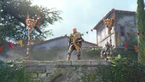 Снова продолжайте подниматься в гору и следуйте по линейной дорожке, чтобы Гуго бросил цветы на процессию.