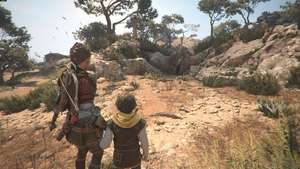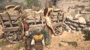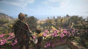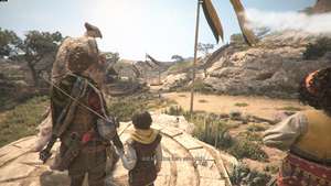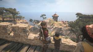 Пройдите через дворы и выйдите за дверь за охраной, чтобы найти ожидающую Софию. Идите с ней вниз по холму и доберитесь до статуи птицы.