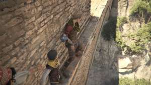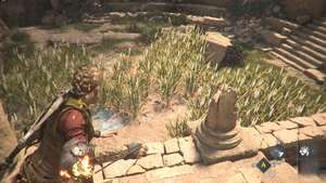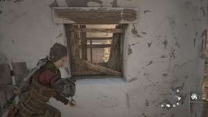 Сразу после прыжка за зданием для коз следите за левой стороной пути, чтобы найти еще одно место для прыжка, ведущее к запертому верстаку. Далее по пути вы упадете и войдете в запретную зону. Это означает, что вас не могут обнаружить или убить какие-либо солдаты. Чтобы помочь с этими ограничениями, вы можете поручить Софии использовать призму и создать временный огонь в месте высокой травы, чтобы отвлечь охранников.