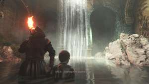 Пройдите внутрь с группой и встаньте на колени, когда будет предложено. С факелом, данным вам графиней, идите вперед через водопад в темную комнату.