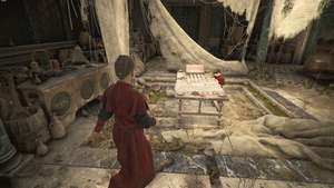 Когда вы восстановите контроль, спуститесь по ступенькам и откройте дверь справа в комнату Базилиуса. Поговорите с Гуго, когда он войдет в палатку, затем откройте дверь впереди, чтобы войти в комнату Элии. Откройте следующую дверь, чтобы войти во двор, а затем дверь за ней после того, как Гуго осмотрит мозаику на стене. Осмотрите лабораторию, а затем вместе с Гуго осмотрите стол в центре комнаты.