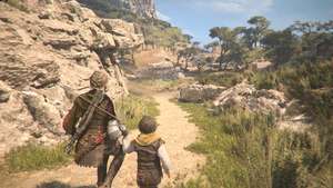 По мере продвижения вверх по тропе после короткой кат-сцены идите по тропинке слева от коз и подпрыгивайте.