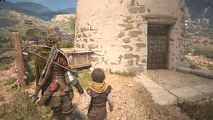 Войдите в здание впереди, опасаясь охранника, патрулирующего внутри, и поднимитесь в маленькую комнату с правой стороны, чтобы найти большой сундук на лестнице, содержащий инструмент, части и дополнительные ресурсы. Поднимитесь по остальным ступеням и обойдите правую сторону области, и, поднимаясь в гору, вы увидите, как охранник закрывает ворота впереди. Слева находится здание, которое дает доступ к башне. Откройте дверь (будьте осторожны с большим врагом, патрулирующим дверной проем), затем поднимитесь наверх и откройте дверь в башню, чтобы закрыть область.