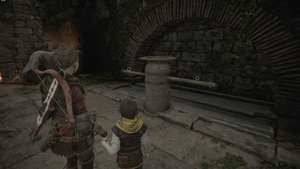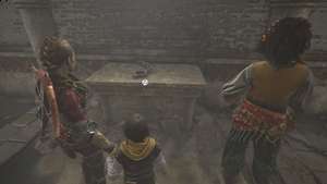 Пройдите внутрь часовни и спуститесь по ступенькам слева и взаимодействуйте с цепью на постаменте на другой стороне комнаты для короткой кат-сцены.