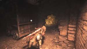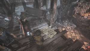 Когда Гуго проснулся, но не отвечает, а Амиция потеряла всякую надежду на счастье, Лука идет впереди, а вы следуете за ним. Вскоре после кат-сцены, где Лука вправляет вам плечо, вы подниметесь на несколько ступенек в комнату с лучами света и колоннами, бегущими по центру. С правой стороны есть комната, в которую вы можете попасть, где есть большой сундук с инструментом, деталями и дополнительными ресурсами.