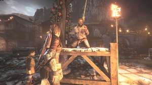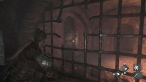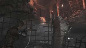 Пройдите вперед, миновав верстак справа и войдя в большую открытую комнату. Посмотрите направо и через щель в воротах вы можете использовать свою пращу, чтобы разрушить цепь, удерживающую дверь на месте.