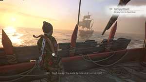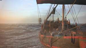 Восстановив контроль, поговорите с каждым из людей на корабле — Арно, Лука, Гуго и София. Поговорив с каждым, вы увидите, что граф преследует вас на своем корабле.
