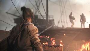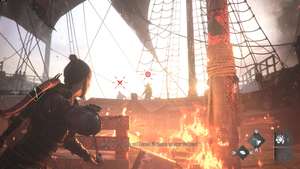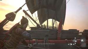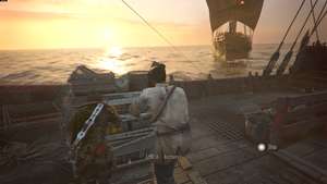 Затем Арно попросит вас помочь выбросить груз за борт. Направляйтесь к большому ящику и хватайтесь за него, пока лучники начинают стрелять.