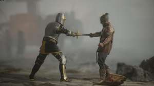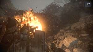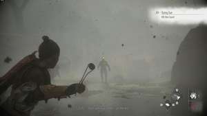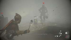 Начинается еще одна боевая секция, на этот раз с затянутой пылью и пеплом арены. Уничтожьте всех солдат, закончив двумя большими бронированными охранниками: один с цепом, а другой со щитом. Мешки с селитрой дадут вам лучший способ оглушить их и сломать их броню с помощью пращи, а затем быстро выстрелить из арбалета, чтобы прикончить их.