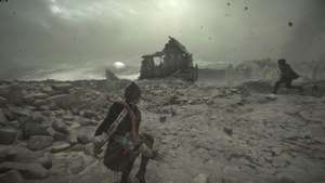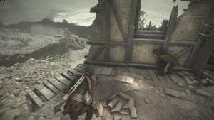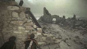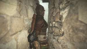 Вы оставляете Софию отдыхать, поэтому выходите на улицу, чтобы увидеть Луку через дорогу, поскольку мимо периодически роятся волны крыс. Лука говорит вам, что, если вы правильно рассчитаете время, вы сможете добраться до куска стены вниз по склону впереди вас. Подождите, пока волна полностью пройдет, прыгайте вниз и бегите к стене.