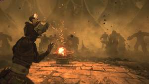 Опять же, идите в противоположном направлении к статуе феникса перед вами, и независимо от других статуй, которые вы проходите, придерживайтесь исходного направления/пути, которое вы выбрали от этой первой статуи. Вы снова вернетесь на арену черепа. Вы можете использовать смолу, чтобы осветлить жаровню, замедляя «людей-крыс» и позволяя вам поразить их своей пращой «Воспламенитель».