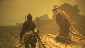 Подойдите к концу моста для короткой кат-сцены, где вы обсуждаете план, а затем нажмите на подсказку, чтобы скатиться в туман внизу. Вы и Лука разделены, так что идите в одиночку по линейному пути. Бегите вниз, и вы увидите статую феникса. Следуйте в направлении, указанном статуей, чтобы найти еще одну (как вы это делали в Главе 9), и продолжайте движение по схеме, пока статуи не станут гигантскими.
