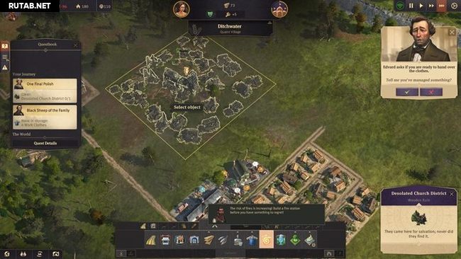 Нажмите на заброшенную церковь, чтобы снести остатки и руины старых зданий. Это даст вам новое пространство для дальнейшего расширения.