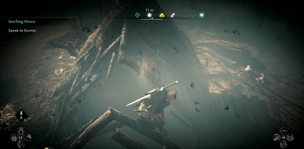 Проклятые символы будут портить окружающую среду по всему диаметру местности действия символа, вынуждая ее выглядеть «черной» и «размытой». Когда вы найдете символ – считайте, что местность зачищена и вам пойдет плюс в достижения, кроме того, вашему герою отсыпят немного опыта. В Вальгалле он падает буквально за все.