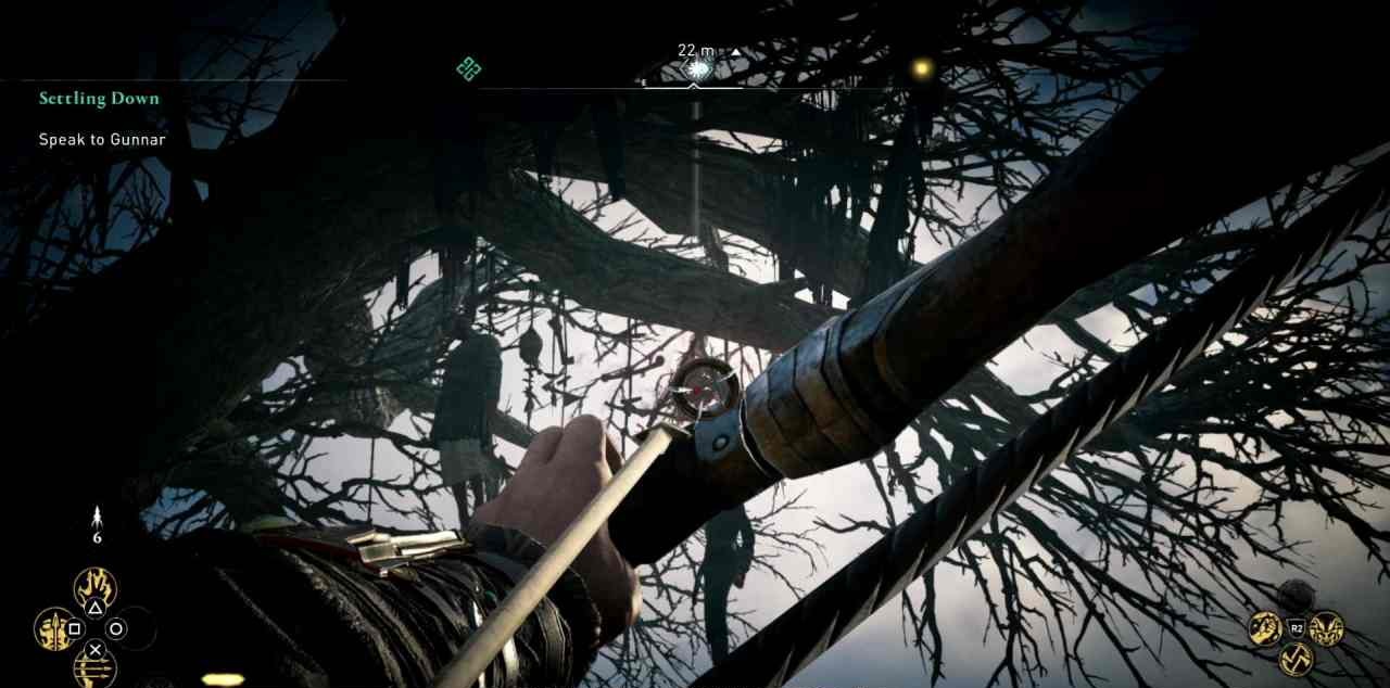 Но есть один нюанс: просто найти символ проклятия недостаточно, вы также должны уничтожить его. Самый простой способ уничтожить символ – стрелять в него из легкого лука. Когда идете на охоту за проклятиями, контролируйте наличие стрел в колчане, на старте их будет совсем немного. Помните, что разные луки используют разные стрелы, и если у вас вдруг закончится боезапас, просто поменяйте тип лука.