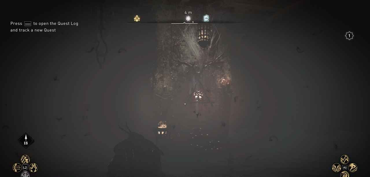 Вход находится довольно далеко от самого проклятия, придется побегать и поискать. Вход можно найти в могилах грайма (значок синего щита на карте). Как только вы доберетесь до комнаты с искомой символикой, сразу прыгайте вниз, область будет залита водой, видно будет плохо, но вы увидите голову на достаточно видном месте, она будет слегка светится. Не спутаете.